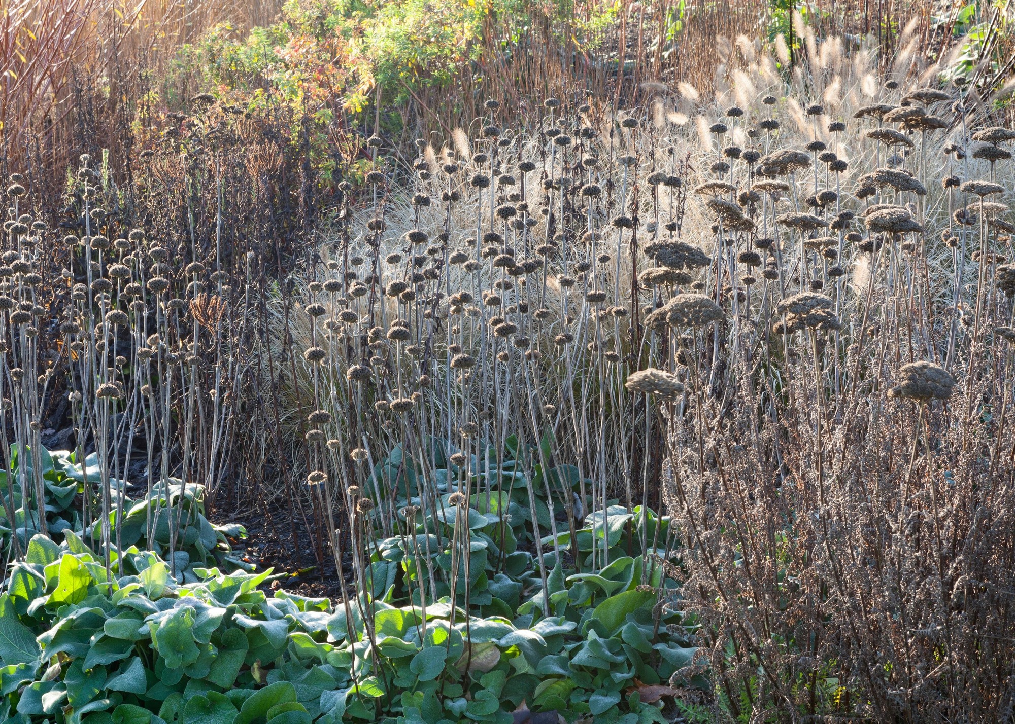 It's easy to overdo it when winterizing your backyard, but if you can leave some plants to seed, it will add interest and life to your outside space. Stiff, manicured gardens not only look old-fashioned, but they do little for nature. A modern approach is to let things look a little 'wild'.