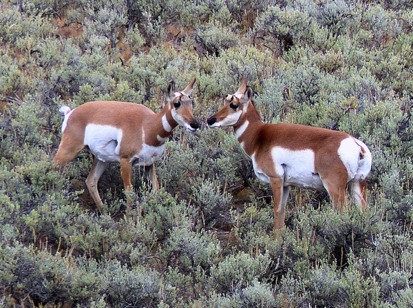 As we watched, a herd of pronghorn antelope scattered around the moose. "They're probably saying, 'What are you? A Dr. Seuss animal?' " Baron said with a chuckle.