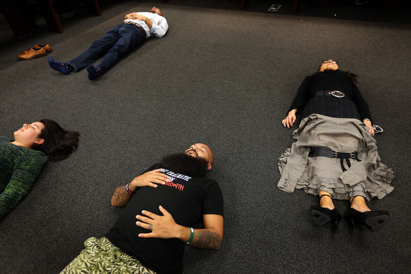 Birkholm, co-founder of Warriors at Ease _ a yoga practice intended to help veterans deal with stress, trauma and combat injuries _ led the group through a meditation session and Q-and-A discussion. Civilians and veterans alike found themselves dealing with common issues: busy minds and restless nights.