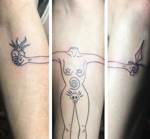 I almost never know what I want when I get a tattoo. What I want is a midset shift. It’s like when you want to change your life so you get a haircut. With the exception of the Lisa Frank sleeve I’m working on, my tattoos are all impulsive. That doesn’t mean that I don’t do any research. Au contraire: I find and follow local artists obsessively. I try to create some kind of social media relationship with them. And then I make an appointment.