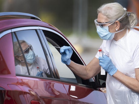 If you are having the coronavirus swab test done at a drive-through service you need to all arrive in the same vehicle and sit next to a window in the vehicle.