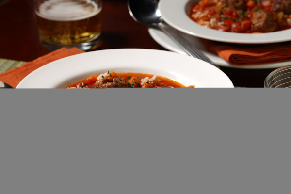 I didn't know stuffed-pepper soup was a thing until I encountered it at a family restaurant in Indiana. Turns out, plenty of versions populate the internet. I float tiny flavor-packed meatballs of beef and Italian sausage in the chunky soup bolstered by basmati rice. Shower each serving with fresh herbs, and you will be happy.