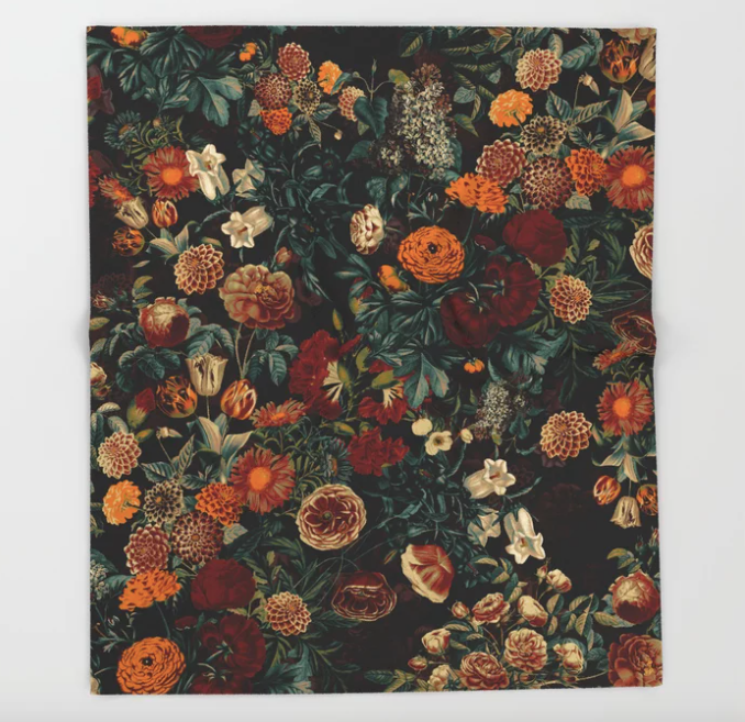 A soft blanket feautring gorgeous imagery is quintessential for a night at home. Try this Society 6 throw featuring gorgeous fall florals on one side and sherpa fleece on the other to stay warm and have something lovely to look at while you do so.