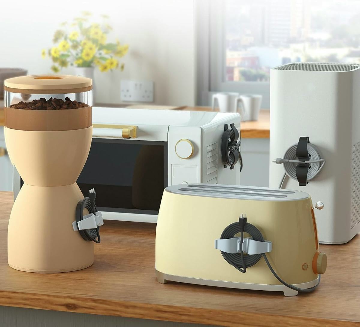 Jumbled appliance cords no more: These eight rubber cord organizers stick onto small appliances like toasters, stand mixers, coffee machines, and more, providing a handy spot to wrap up the power cord when it’s not being used. It’s a simple fix that makes a big impact.