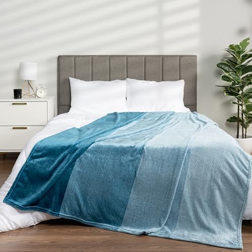 Pavilia Blue Ombre Fleece Blanket for Twin Size Bed, Soft & Cozy Microfiber Gift Decorative Blanket, 60x80
