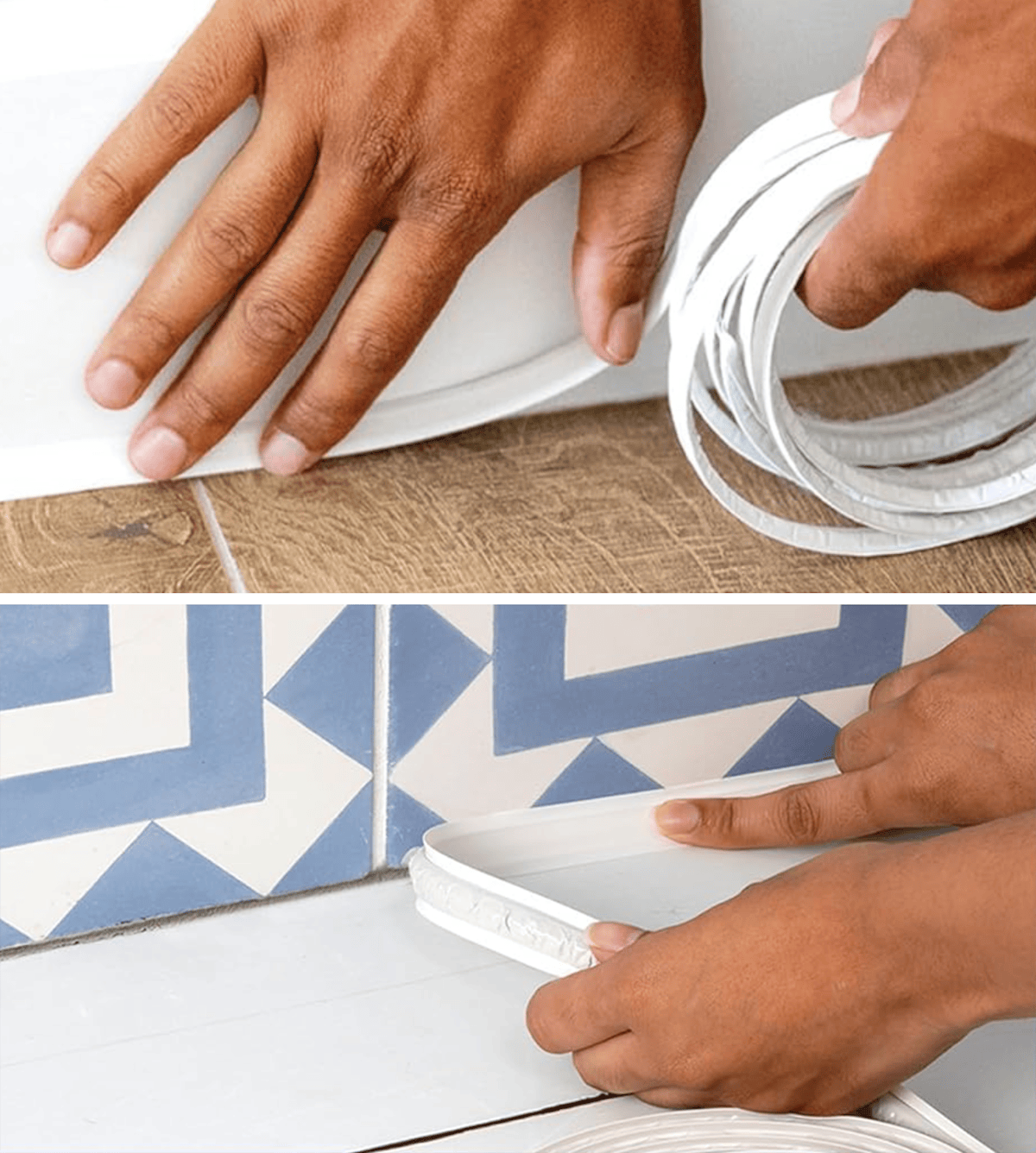 Use stick-on caulk to finish off surfaces