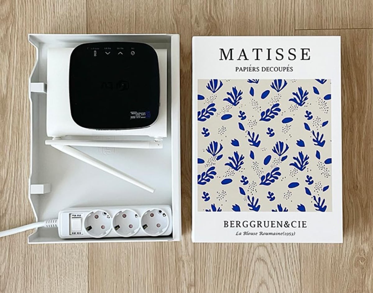 Resembling a pair of stacked books, this pick is actually a cable management box. Stash power strips, charging cables, and other electronics inside, then close it up to conceal them. The magnetic design ensures the box won’t open until you want it to. Choose from several styles in the listing.