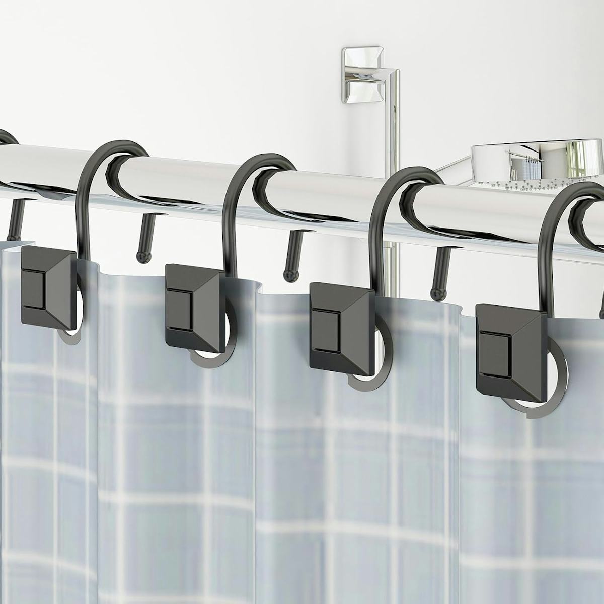 Upgrade to decorative shower curtain hooks for a budget-friendly glow-up