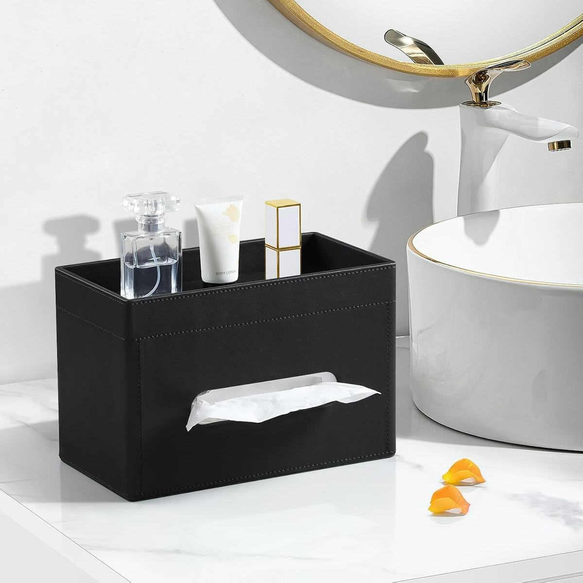 Disguise ugly tissues with a sleek faux leather holder