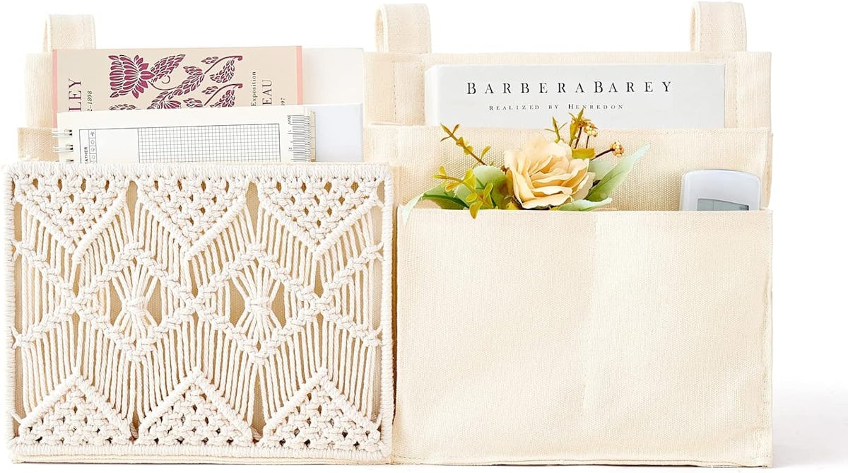 Amazon -Organize the items you use regularly in bed — like your current read, the remote control, lip balm, and more — in this macramé caddy that has seven total pockets. It’s designed to to clear your end table of clutter by hanging directly on the side of your bed using the trio of straps.