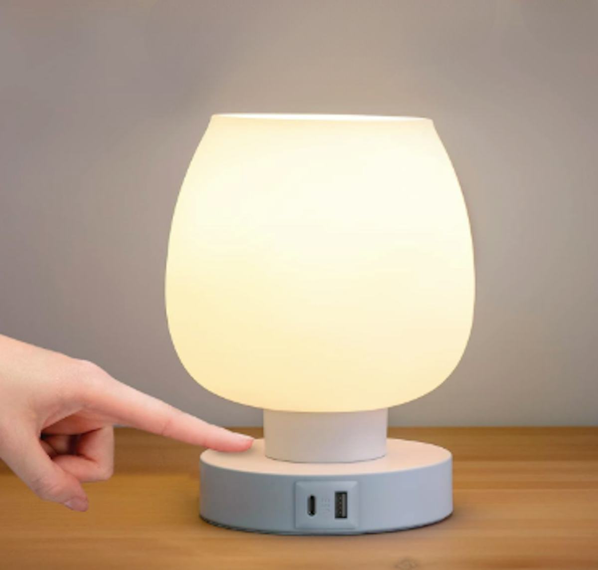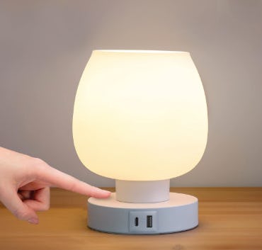 This modern lamp will illuminate your nightstand, desk, or another similar spot. But its functionality doesn’t end there: The light boasts two built-in USB ports to charge your phone and more. Tap the base of the lamp to turn it on and off, or to adjust the brightness level. It also comes in a few pastel hues and even some sets of two.