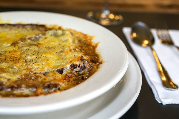 When you see French onion soup on the Pichet or Presse menu _ which you will every winter, until the chill is well-dispelled in April _ you may rest assured that it is the product of intensive thought. Drohman eschews the common Parisian style, made with beef stock, in favor of the chicken-stock-based mode of Lyon; the lighter flavor of the latter, he maintains, better showcases the taste of the onions. You also may rest assured that it is delicious, with the simple flavors of onion and broth augmented with not just white wine, but also sherry, and garlic, and thyme, and something he and his staff call "duck Jell-O" _ "the gelatin-rich duck juices that are left in the bottom of the pot when slow-cooking duck legs for confit," an addition he says is "typical of the French bistro kitchen, where nothing tasty is ever allowed to go to waste."