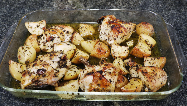 The dish is simple yet tasty, featuring classic Greek flavors such as lemon, olive oil and oregano. Zarras and Moros never tire of it, and it can feed a crowd.