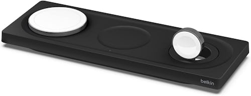 If you’re in the Android ecosystem, Samsung’s Wireless Charger Trio is your best bet. It has a larger pad with space for two devices, be it two phones, or a phone and a pair of Qi-enabled wireless earbuds, plus a divot for a Galaxy Watch. The only downside is the charger maxes out at 9W per device, making it better for overnight charging than a quick top-up.