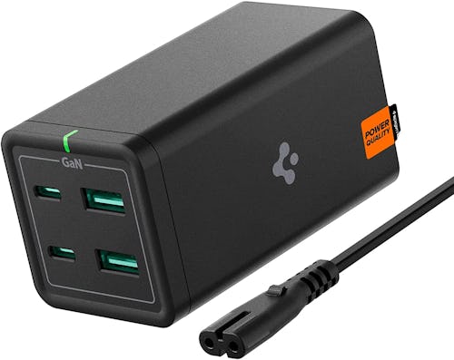 If you prefer to work on your laptop at a desk all day, Spigen’s ArkDock 120W is a game-changer. This four-port gallium-nitride-based (GaN) charger can output 100W when only one USB-C port is used, enough to fast charge a 14-inch MacBook Pro or standard charge a 16-inch. It can also standard charge a 14-inch MacBook Pro, USB-C iPad Air or Pro for those who use Universal Control. That extra 20W of headroom means you can charge up anything else you need in a pinch alongside your laptop off the two USB-A ports. Keeping this tiny powerhouse fastened to your desk with a command strip is an easy way to have power when you need it.