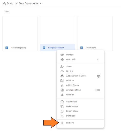 Select "Remove" to banish the document for good. As of October 13, any files dumped in the trash will automatically delete in 30 days.