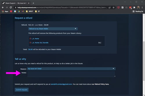 When you’re submitting a refund request, don’t ignore the “Notes” form when choosing a reason for your return. If you write a detailed explanation of why you want a refund — maybe the game isn’t exactly what you expected or you’ve run into enough bugs to make it unenjoyable — it’s possible that Steam will issue a refund outside of its standard limitations.