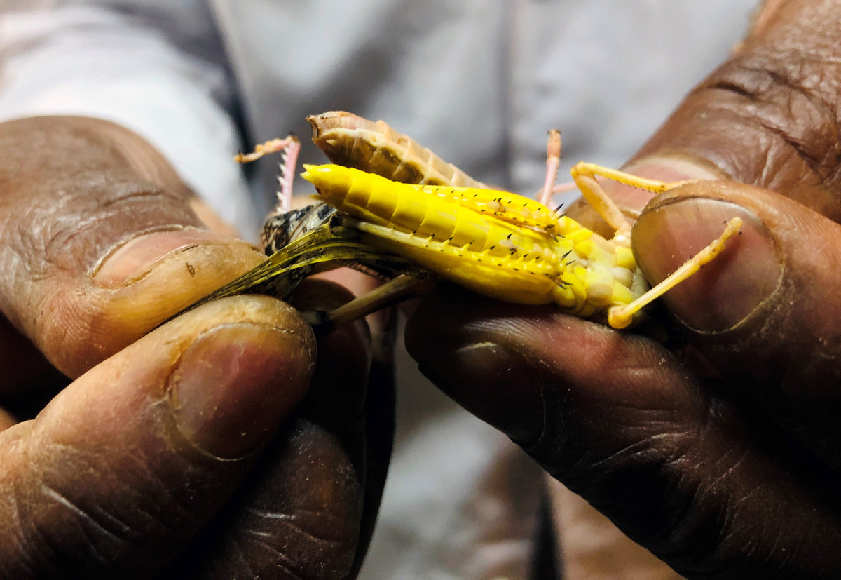 ICIPE is developing nets and backpack-vacuums to capture large numbers of locusts. The protein-rich insects can then be cooked or crushed into meal or oil suitable for animal feed or human consumption. ICIPE organizes regular events to normalize the consumption of insects.
