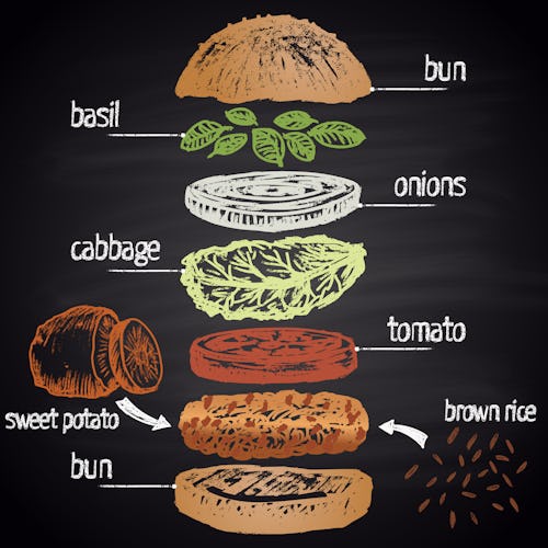 Dried beans, for example, can be fashioned into burger patties and cost about $1.30 per pound, according to the Department of Labor. The same amount of ground beef costs about $4.20. Alternatively, grains like brown rice and root vegetables like sweet potato can also be used as burger-replacements.
