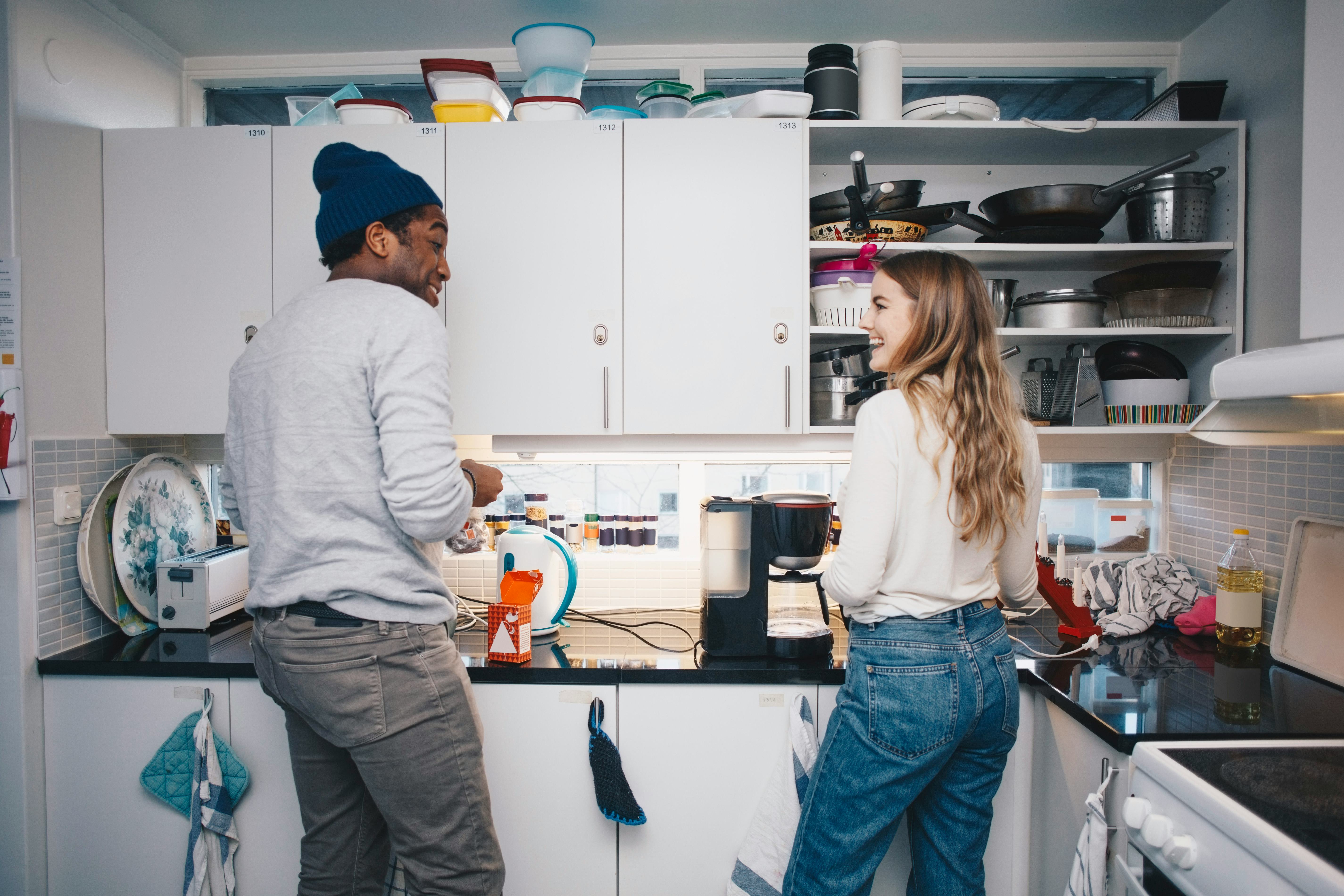 That said, if you do decide to cohabit for the time being, set some precedents. “It’s a really good time to be intentional and deliberate about how you like to live together and how you foresee splitting up tasks,” Liner says. Communicate about daily routines, too, like whether you need an hour to yourself after work to replace the hour you used to spend zoning out on your commute home. Express privacy boundaries as well, like taking phone calls from your parents or using the bathroom, both without having your partner hovering nearby. Talking to your parents in front of your partner can create some awkwardness, especially if your partner hasn't met your parents yet, or if you haven't told your parents about them. And, well, you might just not feel comfortable dropping a deuce around your partner, especially in the early stages of your relationship.