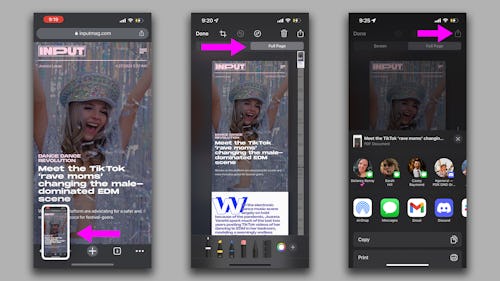 Your iPhone has a native tool that allows you to capture more than one frame in a screenshot, but unfortunately only works in mobile browsers. You’ll be able to screenshot an entire article or the front page of a website, but the tool won’t work in Messages or social media apps.