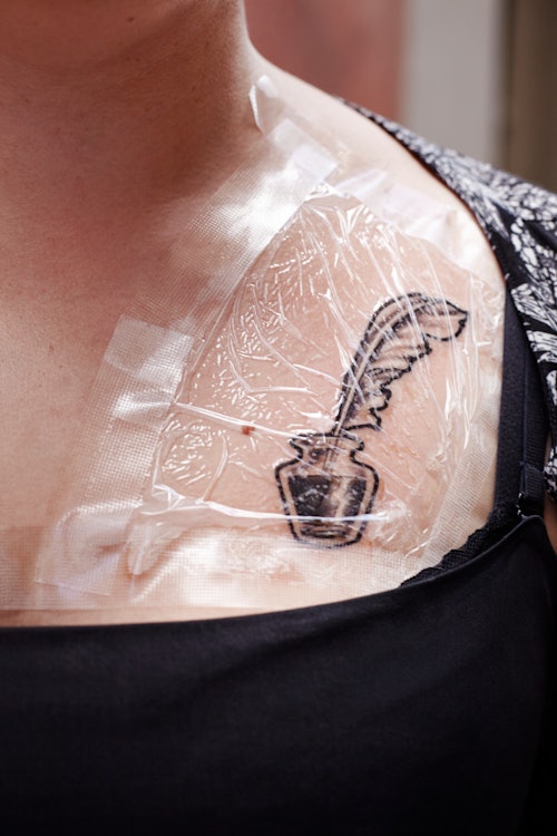 Proper healing isn’t apparently just about aftercare. “The first step to getting a tattoo to heal efficiently is to pick the right artist,” Smith says. “Throughout my years as an artist, I noticed that the better I got at applying tattoos the better they healed up. Typically if your tattoo does not heal up well it's because the artist either overworked your skin or your immune system is compromised.” Smith adds that sometimes individuals with diabetes or auto-immune disorders have a more difficult tat healing time, but otherwise, a lot of it has to do with your artist’s skill. This is surprising to me. I have favorite artists, of course, but generally, I’ll get a tattoo from almost anyone.
