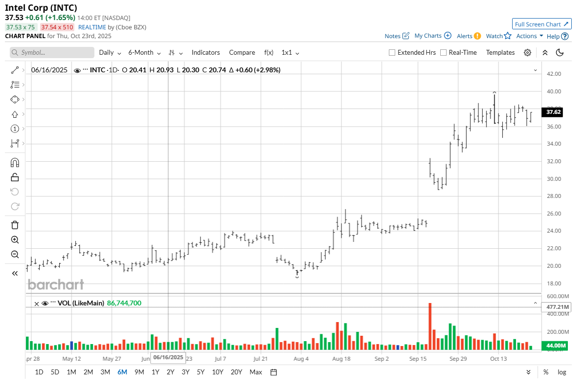 With Intel’s next earnings release scheduled for the afternoon of Thursday, Oct. 23, this developing narrative adds an intriguing element to the trading landscape. The perception of the “government put” could make near-term financial results less critical, potentially softening the stock’s reaction to downside earnings surprises. Moreover, it could amplify the upside response if the company delivers stronger-than-expected numbers.