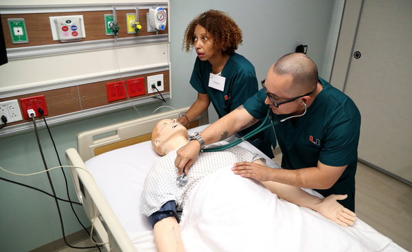 "Practicing on real people can be a very intimidating environment, and as our patients become more savvy, they tend to hesitate when a student walks in," said Susana Barroso-Fernandez, who oversees UM's simulation program. "We created this environment to allow students to practice and make mistakes and never put a patient or student at risk."