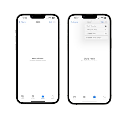 Creating or joining an iCloud Shared Photo Library means you now have access to two libraries; the shared library and your personal one. The Photos app allows you to switch between the two or see photos and videos from both in a single view.
