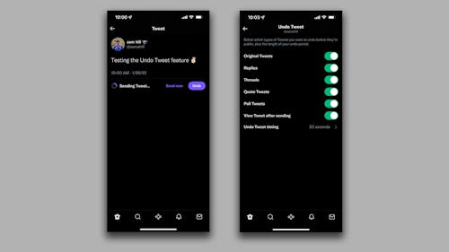 The timer defaults to 20 seconds, but you can push that up to a full minute in your settings. You can also turn this feature off for certain kinds of tweets. To find these settings, go back to the “Twitter Blue” settings menu through your profile sidebar and click on “Undo Tweet.”