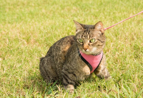 Certain cats if presented with a leash, will chew the thing right off immediately and shoot you a “don’t try that shit with me again” look before retreating to their chosen lounging-spot of the week. But especially if you live in a city, some type of leash is necessary. Christman has some good tips for getting your cat acclimated. “Believe it or not, cats tolerate leashes and harnesses very well,” he says. “If you have them as kittens, it makes them more likely to be desensitized to walking them on a leash. They should be introduced to the harness by putting a harness on indoors — the first few times they may roll around, hiss, and try get rid of it, but eventually they will accept it. Let them become accommodated to wearing it before attaching a leash to it and going outdoors.” That’s where I might’ve gone wrong with baby Cabbage. I just just threw a harness on her and took her right outside. She was not feeling it.