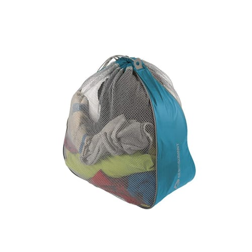 If you stuff dirty laundry in a trash bag, it festers and smells. A better option is to store it in the Sea to Summit Travelling Light Laundry Bag, made from yarn that lets odors escape. The yarn is water-resistant and very strong, so it doesn’t snag easily even when caught in zip fasteners.