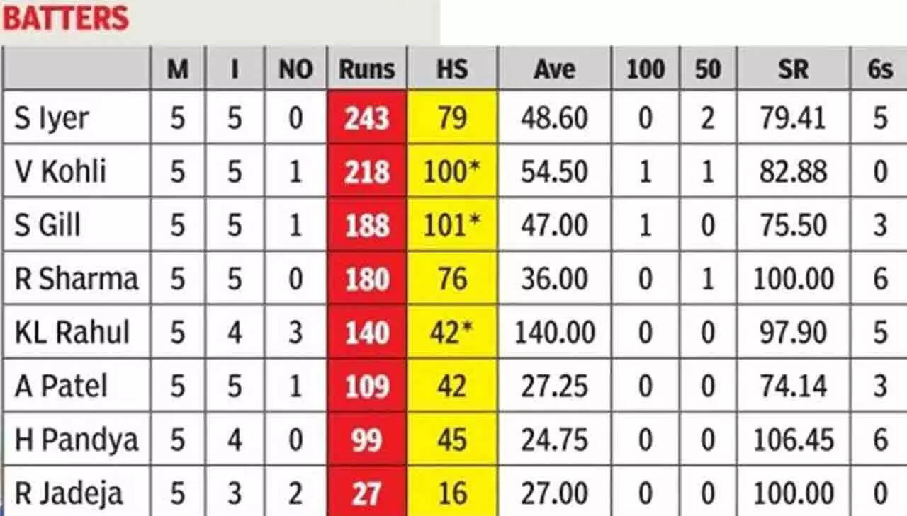 Iyer was India's leading run-getter in the tournament, making him the second-highest run-scorer overall after New Zealand's Rachin Ravindra with 263 runs. His consistency under pressure was pivotal to India's eventual title win. He demonstrated solid temperament and reliability in the middle-order. Iyer's adaptability and ability to score tough runs made him a vital cog in the batting lineup. Even in the final, his 48-run knock was vital in stabilizing the innings after India lost quick wickets of Gill, Rohit and Kohli.