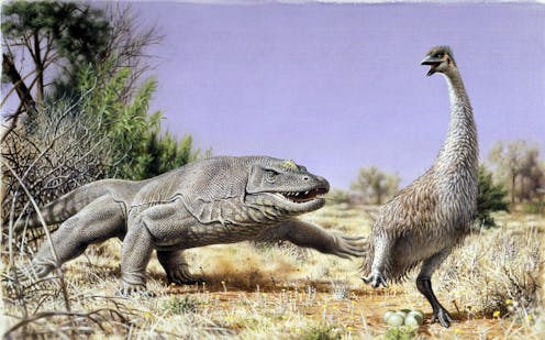 In the 1990s, a team including John Magee, at Australian National University, and Gifford Miller, one of the authors of this article, provided firm dates for similar shell fragments collected at thousands of arid zone sites. Genyornis was one of many large animals – known as “megafauna” – that once roamed Australia and vanished at around the same time. The work by Miller, Magee and others pinned a clear date of 50,000 years ago on this extinction event.