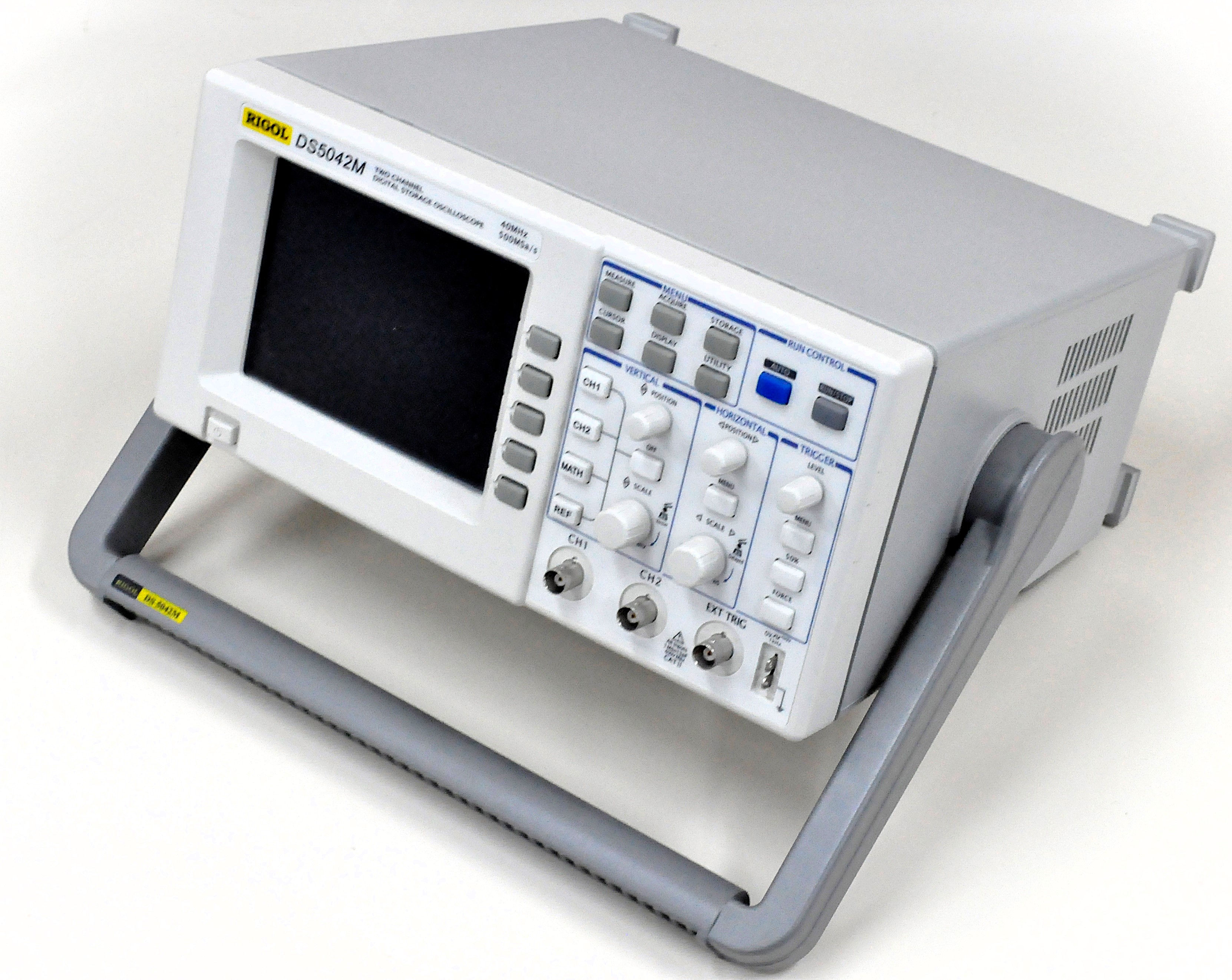 A Rigol DS5042M digital oscilloscope is also employed, featuring 40 MHz bandwidth and a 500 MSa/s real-time sampling rate. Both are suitable for ripple and noise testing as per the ATX design guide.