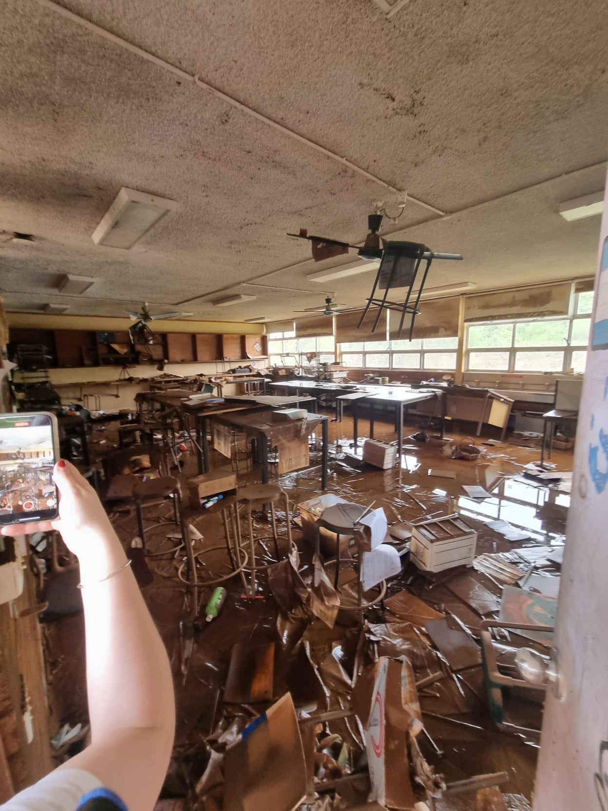 Teacher-owned devices with photos of the works in progress were also destroyed in the floods.