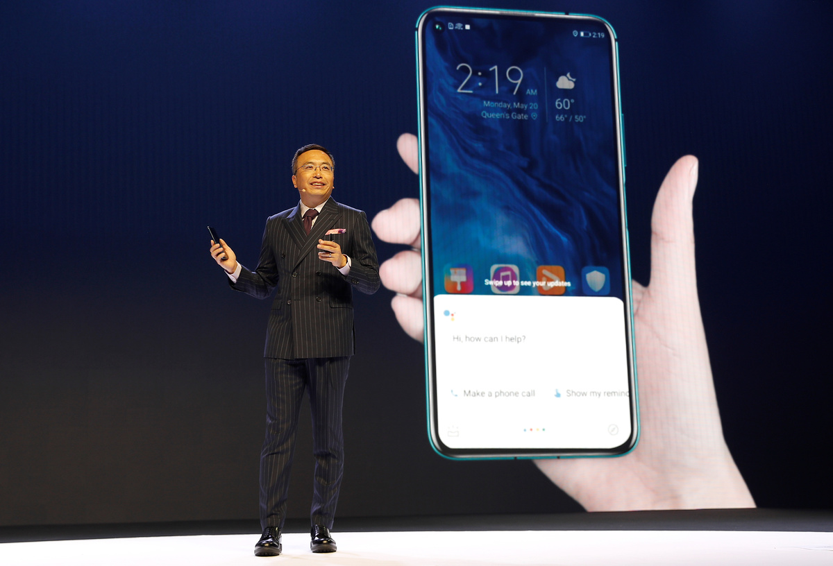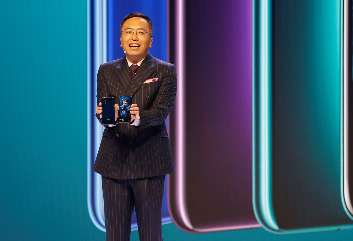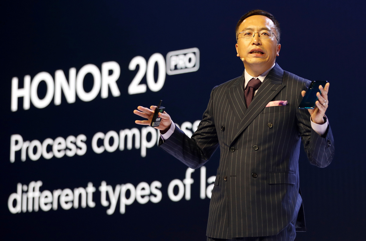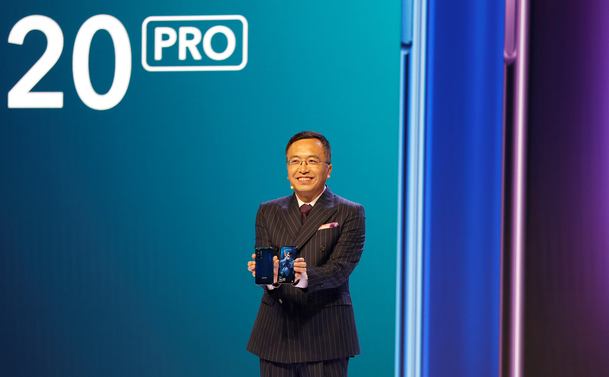 "We will talk and communicate with the world using our products, technology and innovation," he added, as he showed off the Honor 20 Pro, which features four rear cameras, including wide-angle and telephoto, and a 48-megapixel main camera.