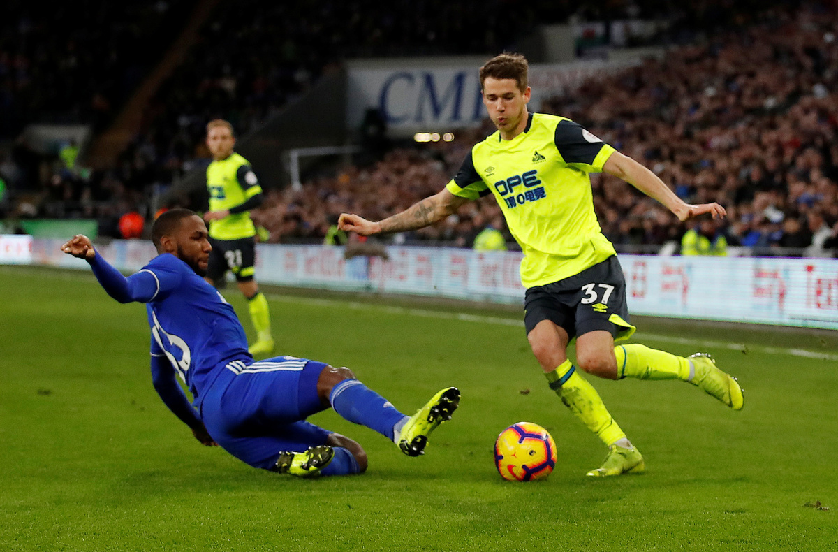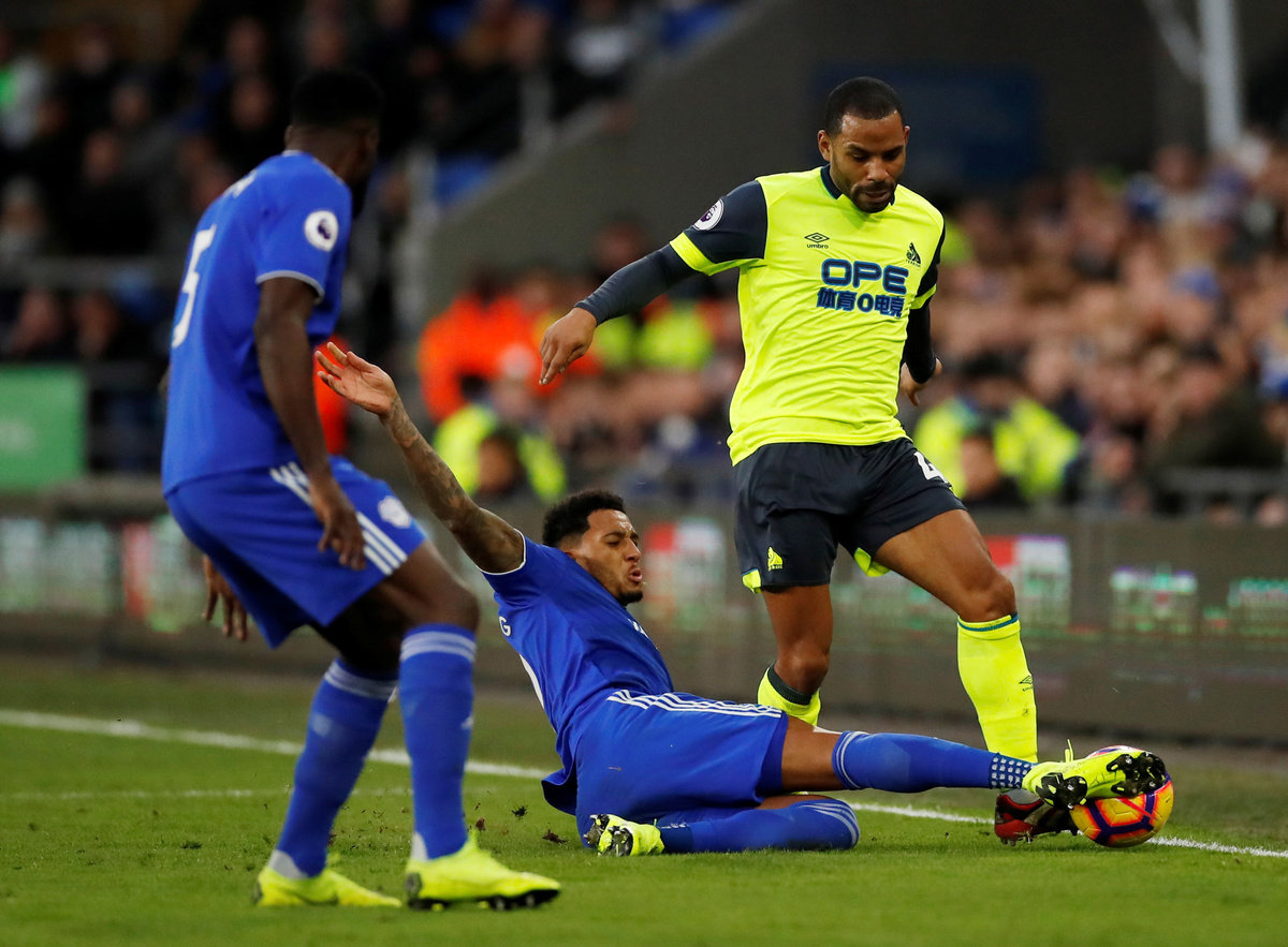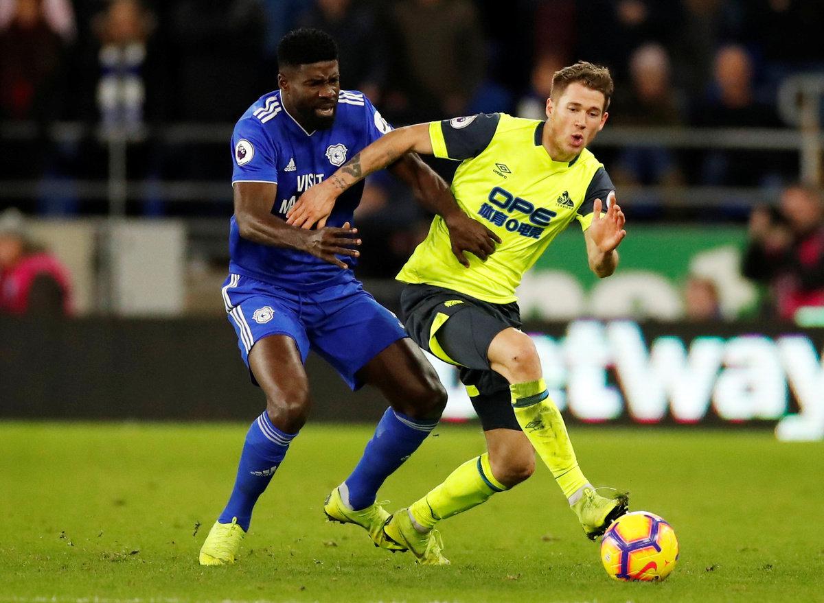 Soccer Football - Premier League - Cardiff City v Huddersfield Town - Cardiff City Stadium, Cardiff, Britain - January 12, 2019 Huddersfield Town's Erik Durm in action with Cardiff City's Junior Hoilett Action Images via Reuters/Andrew Boyers Soccer Football - Premier League - Cardiff City v Huddersfield Town - Cardiff City Stadium, Cardiff, Britain - January 12, 2019 Huddersfield Town's Erik Durm in action with Cardiff City's Bruno Ecuele Manga Action Images via Reuters/Andrew Boyers Soccer Football - Premier League - Cardiff City v Huddersfield Town - Cardiff City Stadium, Cardiff, Britain - January 12, 2019 Huddersfield Town's Steve Mounie in action with Cardiff City's Aron Gunnarsson and Sean Morrison REUTERS/Rebecca Naden Soccer Football - Premier League - Cardiff City v Huddersfield Town - Cardiff City Stadium, Cardiff, Britain - January 12, 2019 Cardiff City's Callum Paterson in action with Huddersfield Town's Jonas Lossl and Christopher Schindler Action Images via Reuters/Andrew Boyers Soccer Football - Premier League - Cardiff City v Huddersfield Town - Cardiff City Stadium, Cardiff, Britain - January 12, 2019 Cardiff City's Harry Arter shoots at goal Action Images via Reuters/Andrew Boyers Soccer Football - Premier League - Cardiff City v Huddersfield Town - Cardiff City Stadium, Cardiff, Britain - January 12, 2019 Cardiff City's Harry Arter shoots at goal Action Images via Reuters/Andrew Boyers