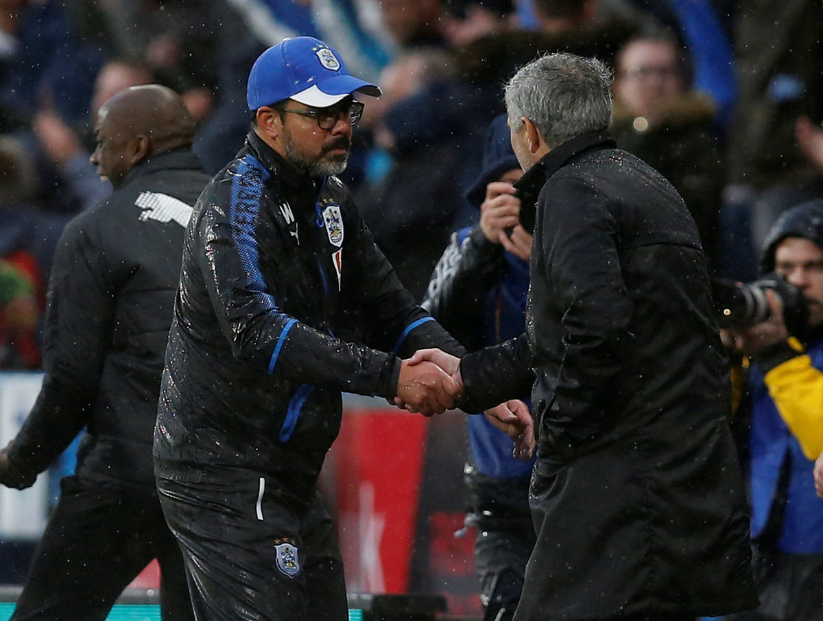 Soccer Football - Premier League - Huddersfield Town vs Manchester United - John Smith's Stadium, Huddersfield, Britain - October 21, 2017 Manchester United's Romelu Lukaku in action with Huddersfield Town’s Mathias Jorgensen REUTERS/Andrew Yates Soccer Football - Premier League - Huddersfield Town vs Manchester United - John Smith's Stadium, Huddersfield, Britain - October 21, 2017 Huddersfield Town’s Laurent Depoitre scores their second goal Action Images via Reuters/Ed Sykes Soccer Football - Premier League - Huddersfield Town vs Manchester United - John Smith's Stadium, Huddersfield, Britain - October 21, 2017 Manchester United's Ander Herrera in action with Huddersfield Town’s Aaron Mooy and Jonathan Hogg Action Images via Reuters/Ed Sykes Soccer Football - Premier League - Huddersfield Town vs Manchester United - John Smith's Stadium, Huddersfield, Britain - October 21, 2017 Manchester United's Marcus Rashford scores their first goal Action Images via Reuters/Ed Sykes Soccer Football - Premier League - Huddersfield Town vs Manchester United - John Smith's Stadium, Huddersfield, Britain - October 21, 2017 Manchester United's Romelu Lukaku in action with Huddersfield Town’s Christopher Schindler Action Images via Reuters/Ed Sykes Soccer Football - Premier League - Huddersfield Town vs Manchester United - John Smith's Stadium, Huddersfield, Britain - October 21, 2017 Manchester United's Antonio Valencia in action with Huddersfield Town’s Danny Williams REUTERS/Andrew Yates Soccer Football - Premier League - Huddersfield Town vs Manchester United - John Smith's Stadium, Huddersfield, Britain - October 21, 2017 Huddersfield Town’s Laurent Depoitre misses from close range REUTERS/Andrew Yates Soccer Football - Premier League - Huddersfield Town vs Manchester United - John Smith's Stadium, Huddersfield, Britain - October 21, 2017 Huddersfield Town manager David Wagner celebrates with Danny Williams at the end of the match REUTERS/Andrew Yates Soccer Football - Premier League - Huddersfield Town vs Manchester United - John Smith's Stadium, Huddersfield, Britain - October 21, 2017 Huddersfield Town fans celebrate at the end of the match Action Images via Reuters/Ed Sykes Soccer Football - Premier League - Huddersfield Town vs Manchester United - John Smith's Stadium, Huddersfield, Britain - October 21, 2017 Manchester United manager Jose Mourinho looks dejected REUTERS/Andrew Yates Soccer Football - Premier League - Huddersfield Town vs Manchester United - John Smith's Stadium, Huddersfield, Britain - October 21, 2017 Huddersfield Town manager David Wagner celebrates at the end of the match Action Images via Reuters/Ed Sykes Soccer Football - Premier League - Huddersfield Town vs Manchester United - John Smith's Stadium, Huddersfield, Britain - October 21, 2017 Huddersfield Town manager David Wagner shakes hands with Manchester United manager Jose Mourinho at the end of the match REUTERS/Andrew Yates