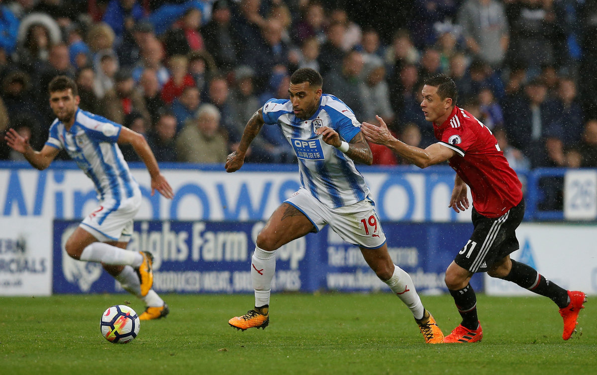 Soccer Football - Premier League - Huddersfield Town vs Manchester United - John Smith's Stadium, Huddersfield, Britain - October 21, 2017 Huddersfield Town’s Danny Williams in action with Manchester United's Nemanja Matic REUTERS/Andrew Yates