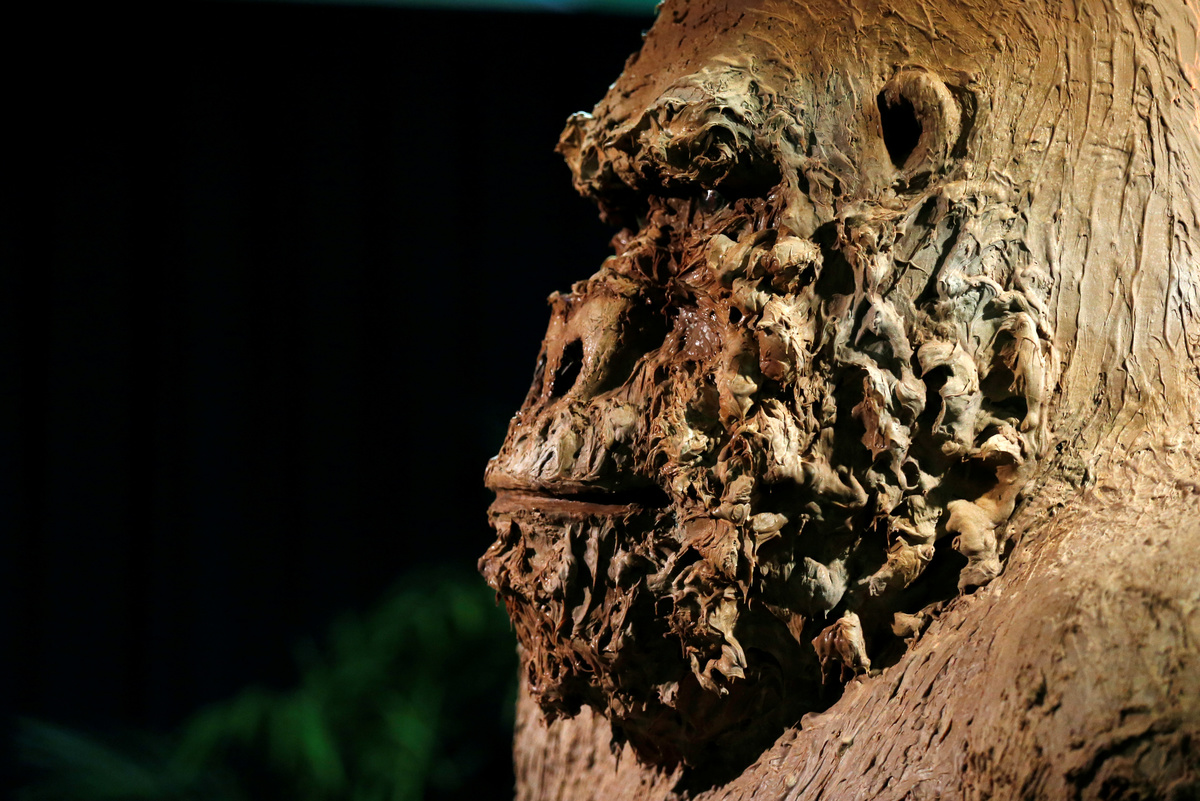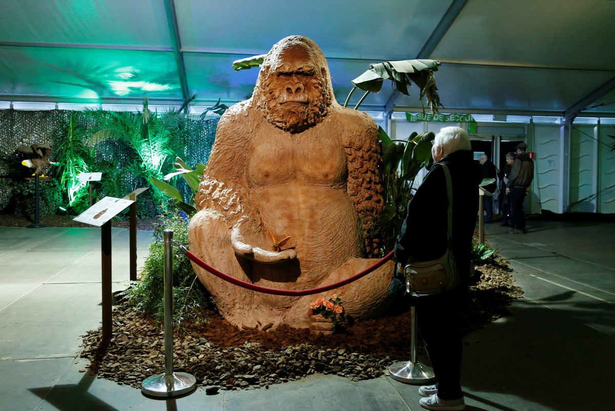 A visitor looks at a chocolate sculpture of a gorilla during the chocolate sculpture festival in Durbuy, Belgium March 29, 2018. REUTERS/Francois Lenoir