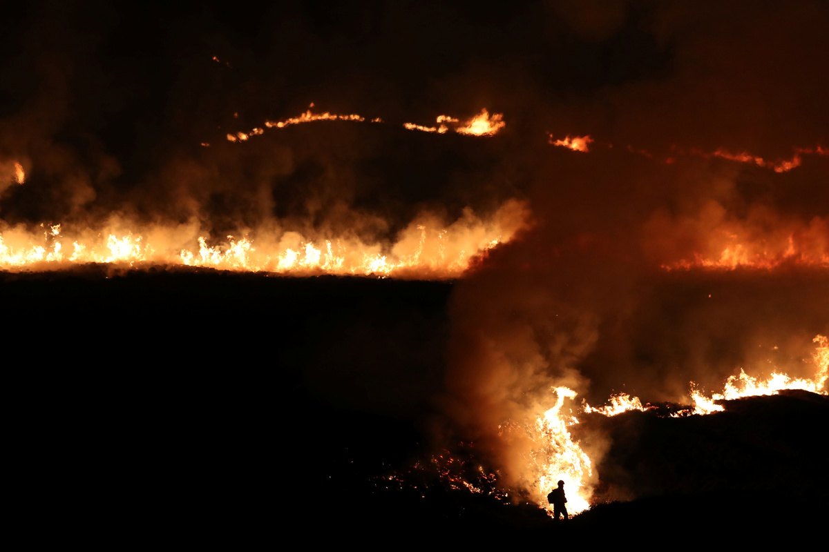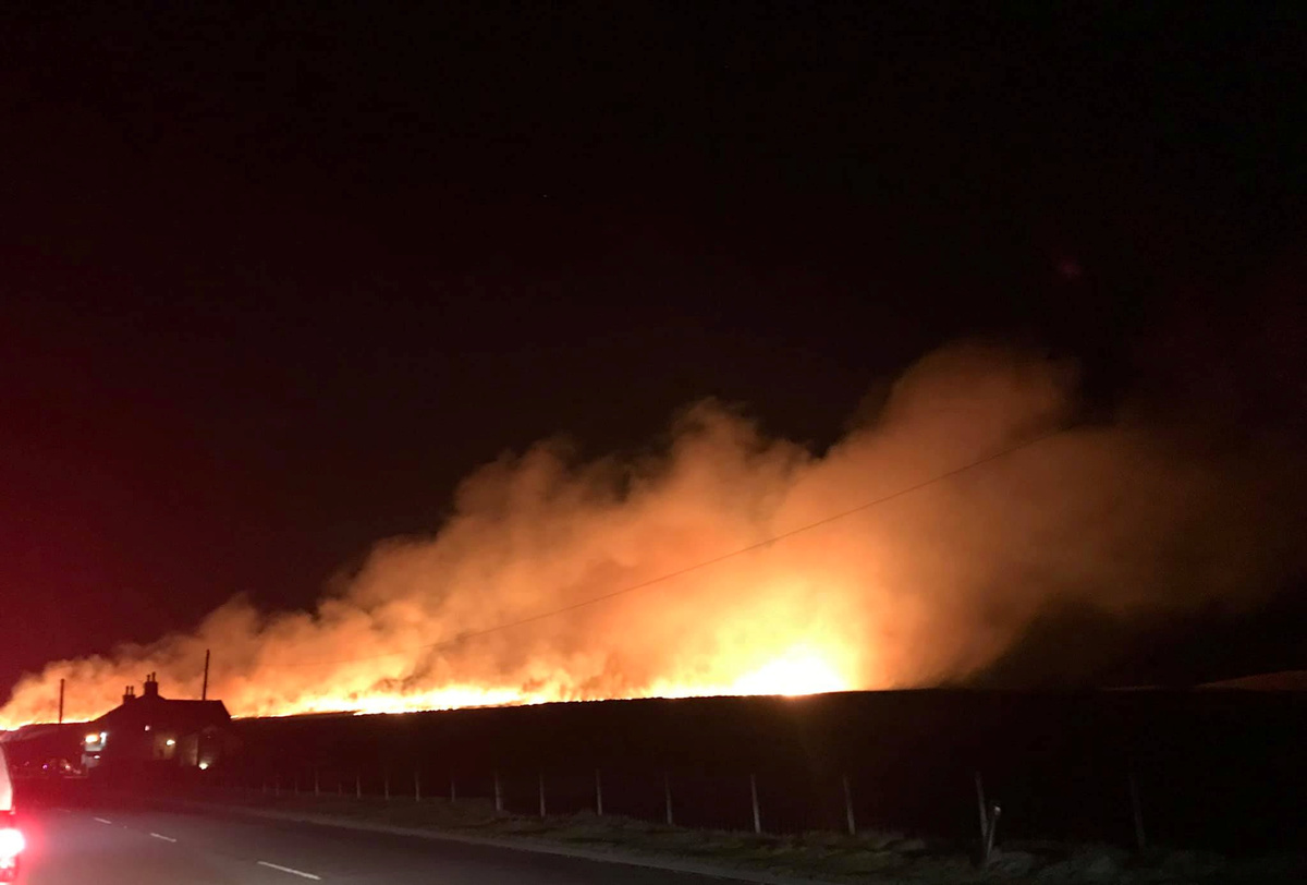 A fire is seen burning on Saddleworth Moor near the town of Diggle, Britain, February 27, 2019. REUTERS/Jon Super