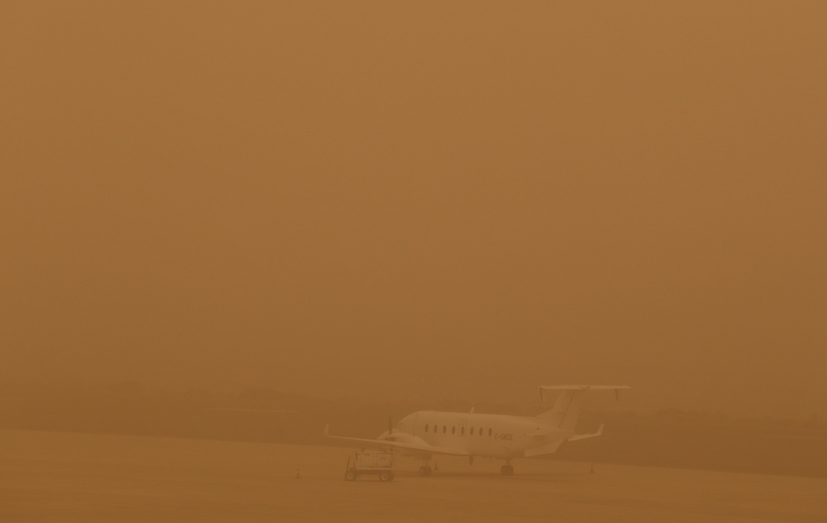 Known as "calimas", the sandstorms form when strong winds whip up dense clouds of sand from the Sahara and carry them across the 60 mile gap to the Canaries.