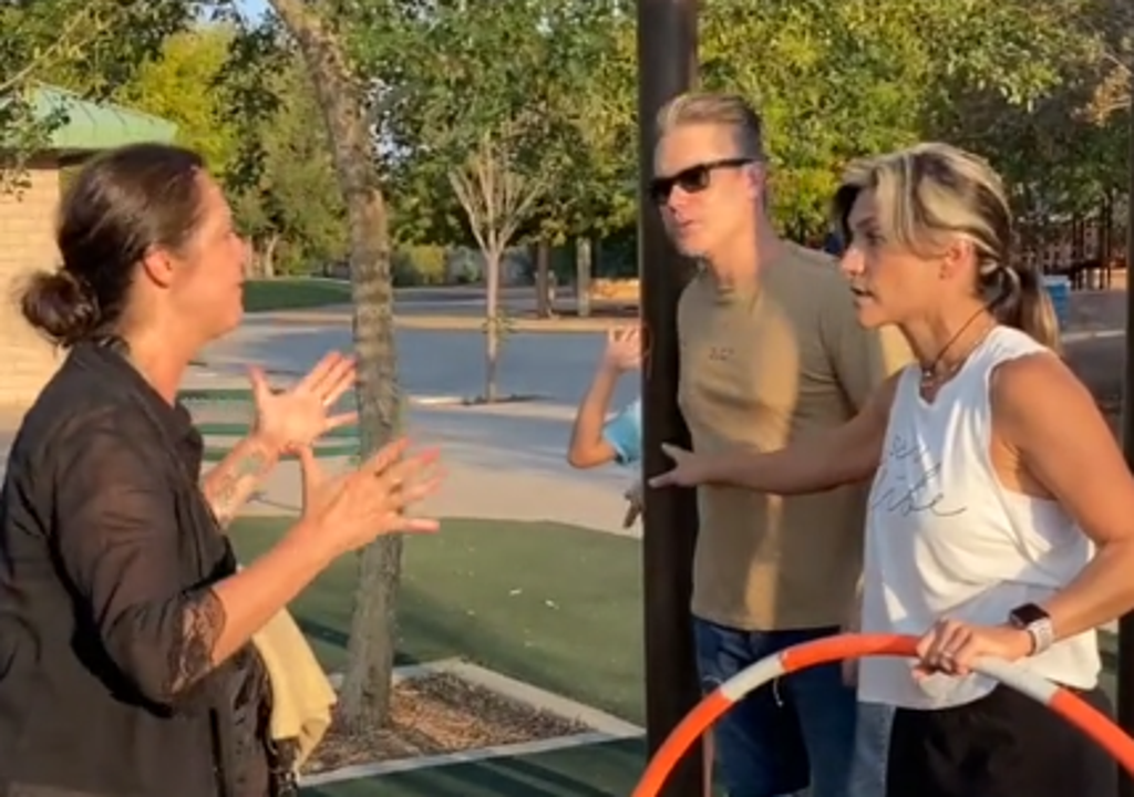 At this point, the woman snatches the hoop from Kehayova, tossing it across the park. "You’re filming it for TikTok? How about this? Let me show you what you can do for a TikTok," she yelled.