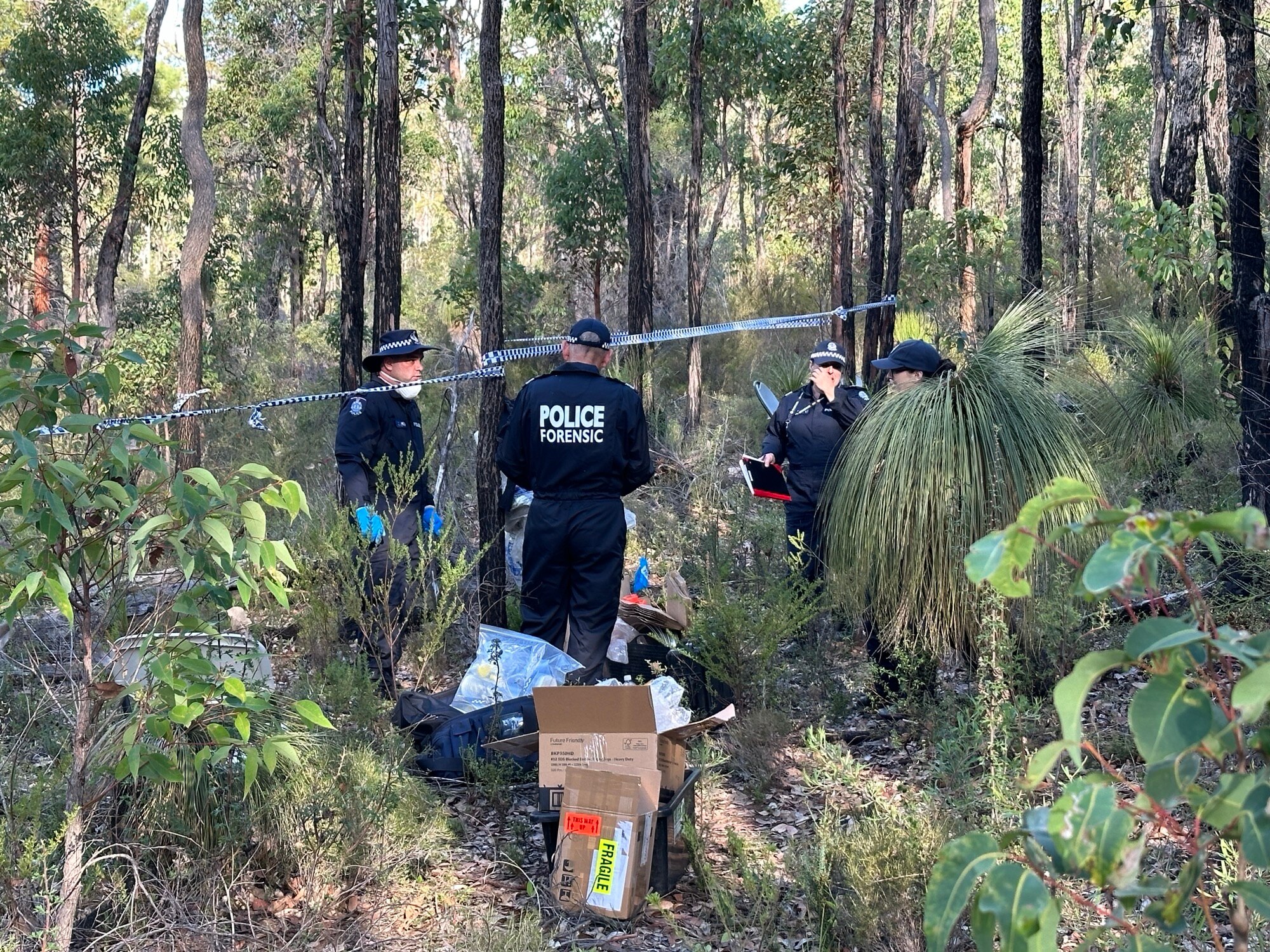 Detectives and forensics officers are at the scene near the Brockman Highway at Jalbarragup, where Corey O'Connell was last seen walking along the highway on June 24, 2021.