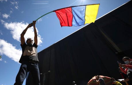 Colombia’s police have come under scrutiny from human rights groups for their behavior during the protests, in which videos have shown police shooting at protesters or standing by while armed civilians fired at demonstrators.