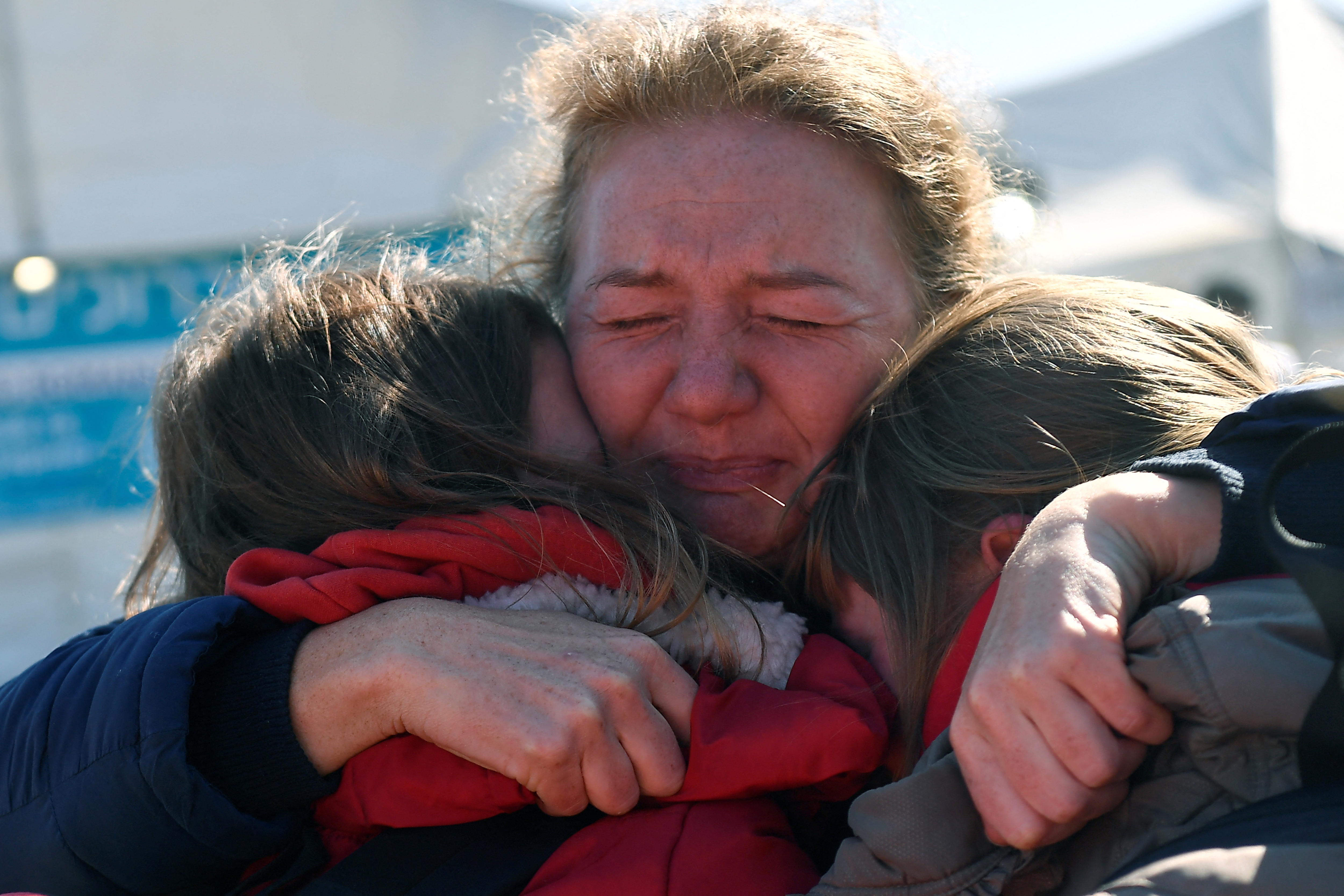 Kateryna Mytkevich, 39, who arrived in Poland after fleeing Chernihiv, wiped away tears as she described how entire neighbourhoods had been destroyed.