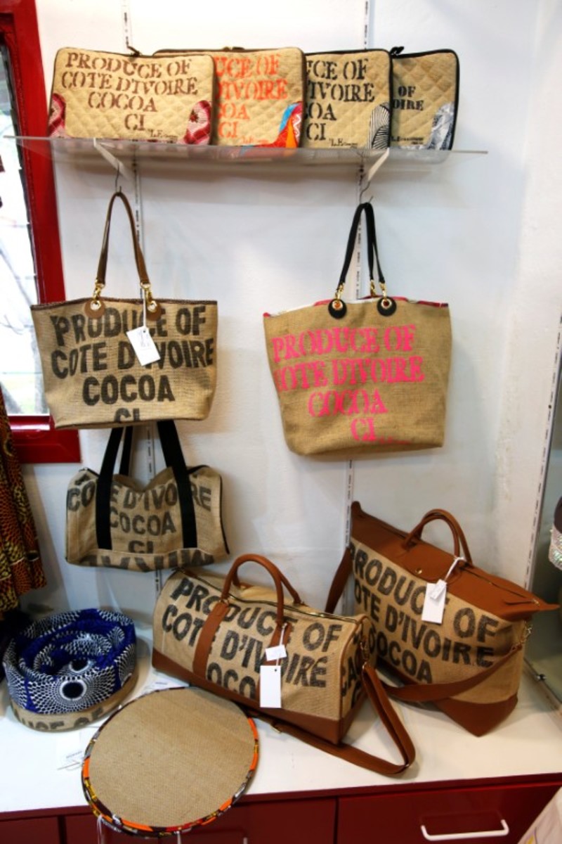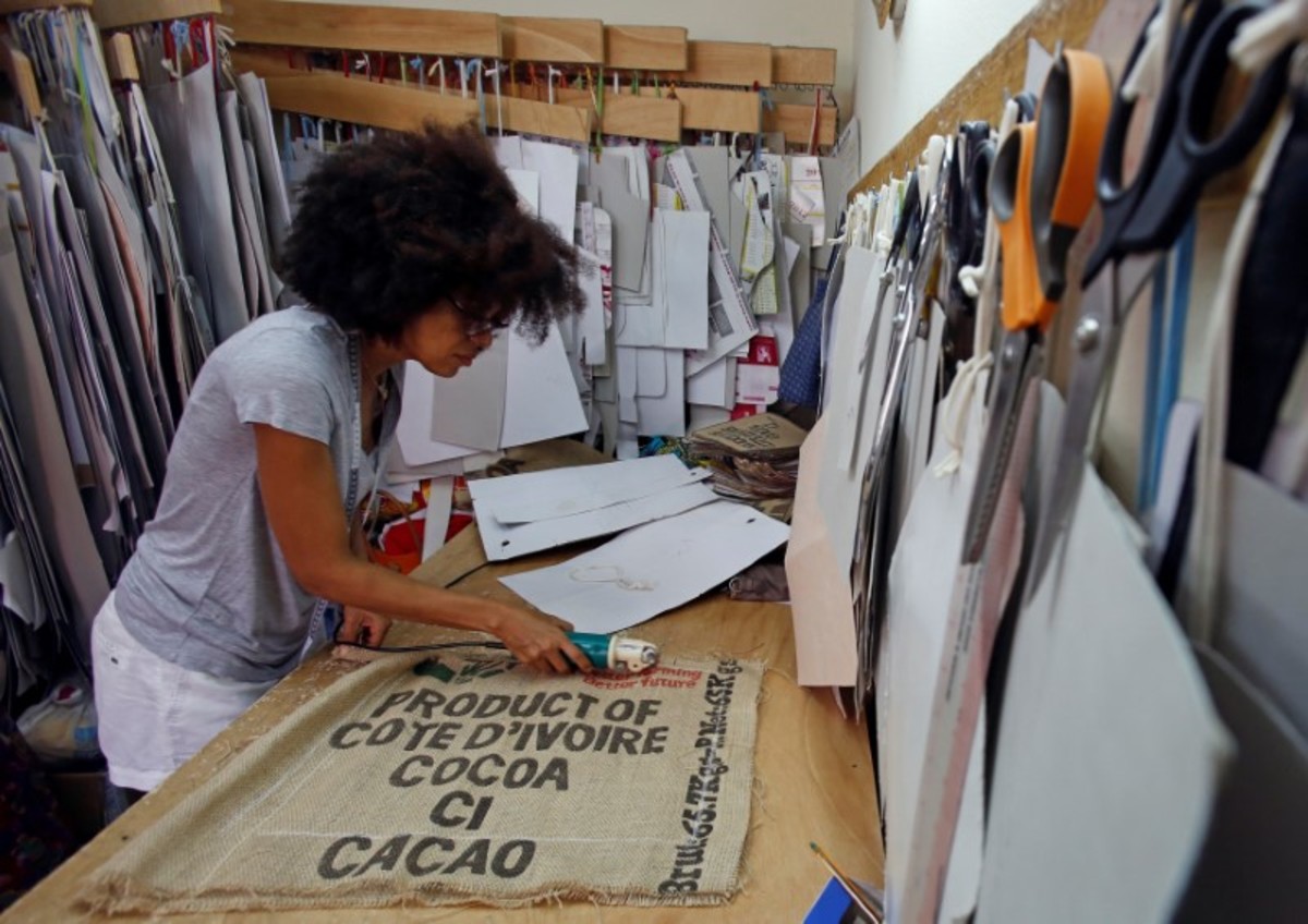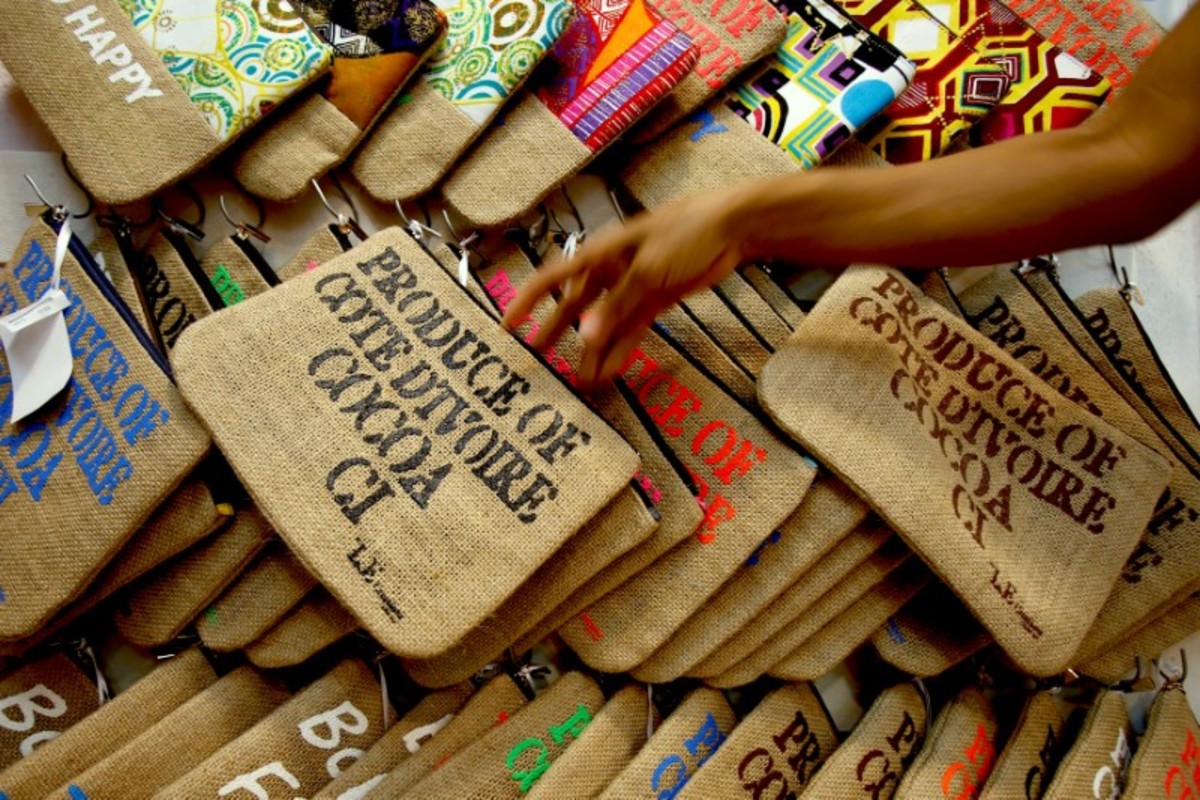Liliane Estievenart, 45, hit on the idea of turning the sacks into attractive bags with the stenciled slogan "Produce of Cote d'Ivoire - Cocoa" - a reminder that the West African country is the world's top producer of the commodity.