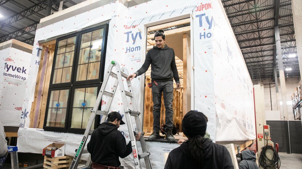 Inherent L3C builds the houses at a factory in Austin near Kilpatrick Avenue and Polk Street.