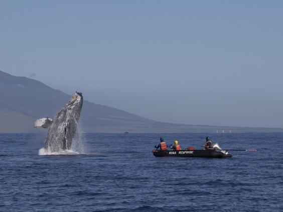 The NOAA reminded people it is illegal to approach a humpback whale within 100 yards by sea, and 1,000ft by plane.
